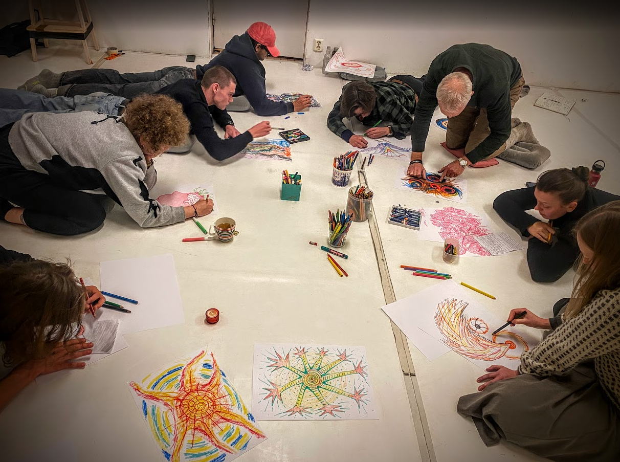 Du kan ta med deg et tema du ønsker å utforske, eller du får et å dykke inn i. Det vil alltid dukke opp ny innsikt gjennom refleksjon og tegning. Refleksjon rundt det du uttrykker på papiret er viktig. Hva kom du i kontakt med der?